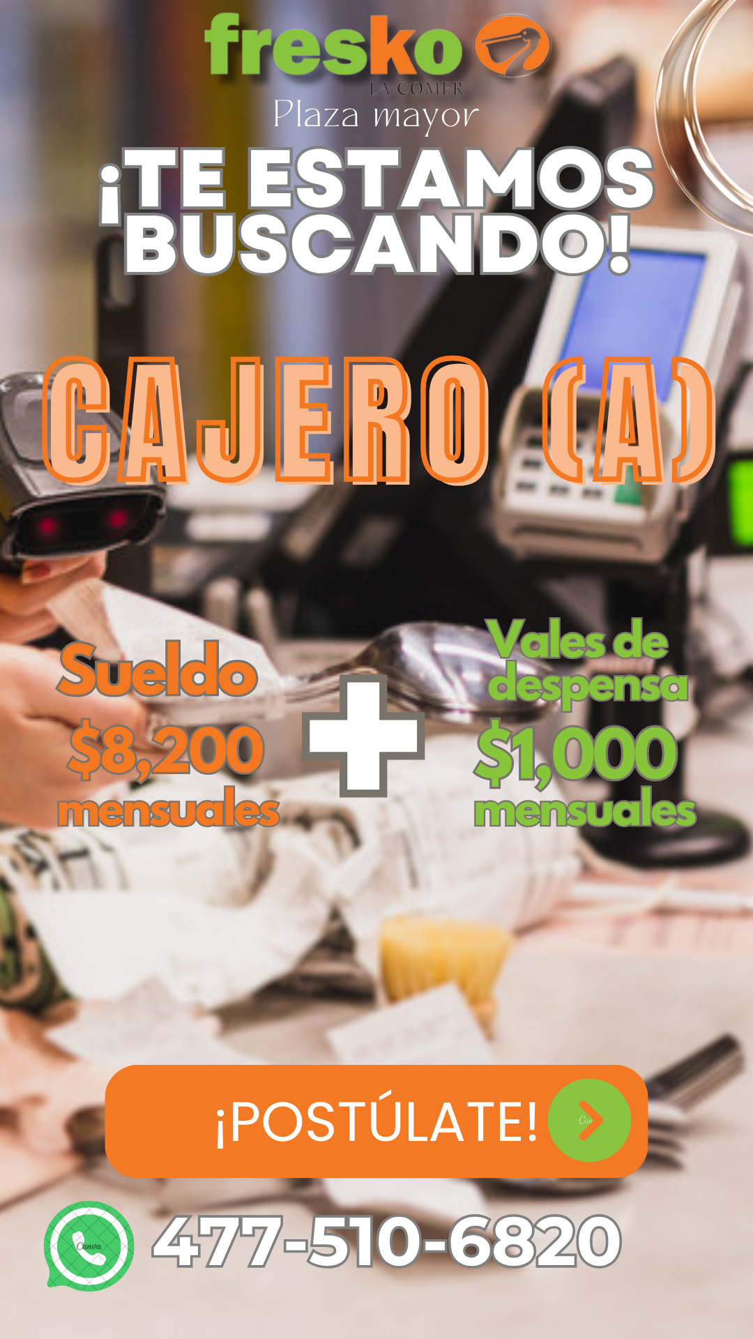 Estamos en búsqueda de un(a) Cajero(a) responsable y con excelente actitud para formar parte de nuestro equipo en Fresko Plaza Mayor. La persona seleccionada será responsable de realizar cobros, brindar atención amable y eficiente a los clientes, y mantener el orden en la caja registradora.